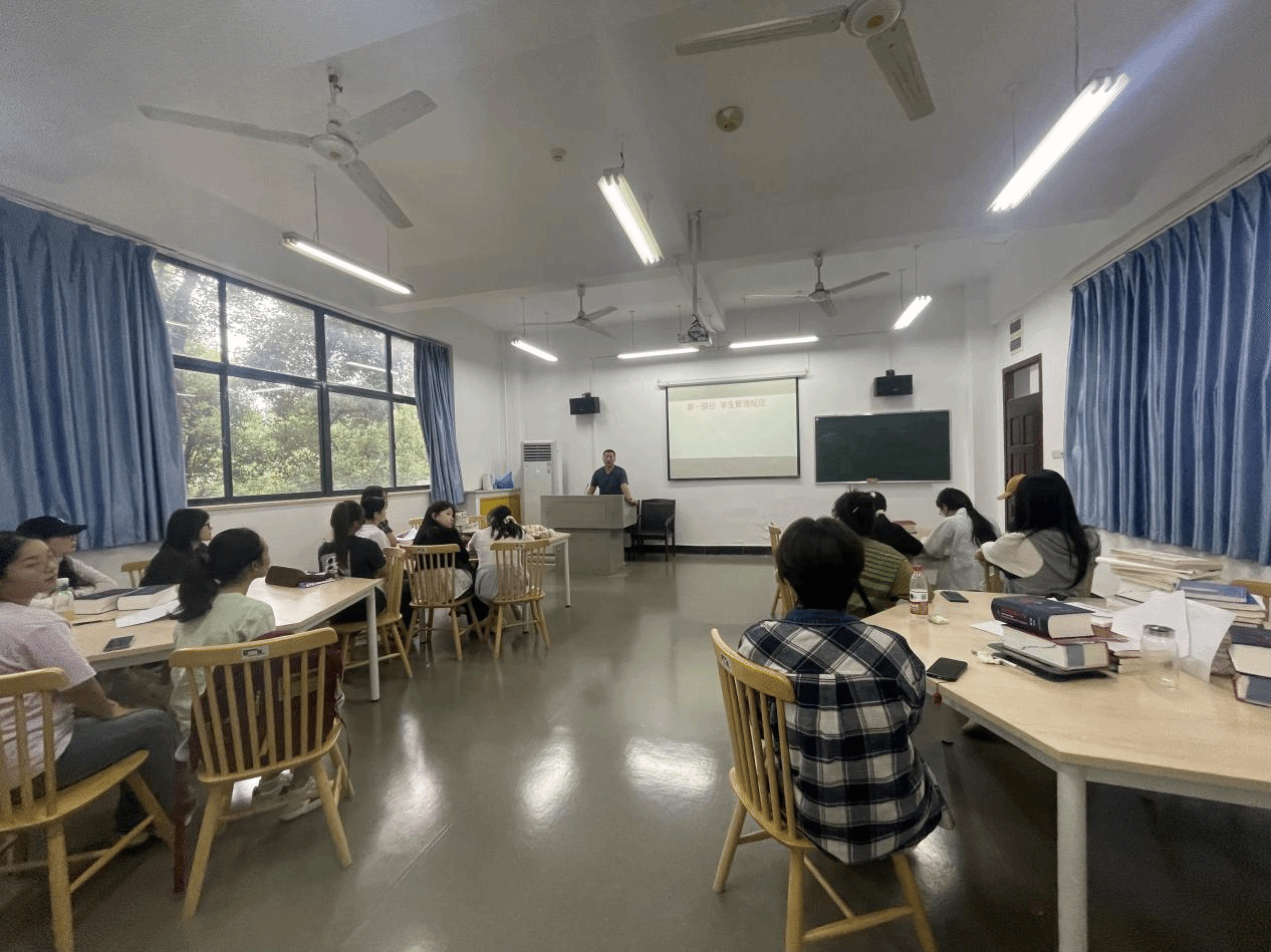 9月19日下午,辅导员聂啸天在崇文楼308对员工进行了日常安全和管理制度教育。聂老师不仅强调了宿舍用电、外出防盗等安全要点,还详细解读了研究生考勤、请假及学术规范等管理制度,帮助员工快速明确在校行为准则。