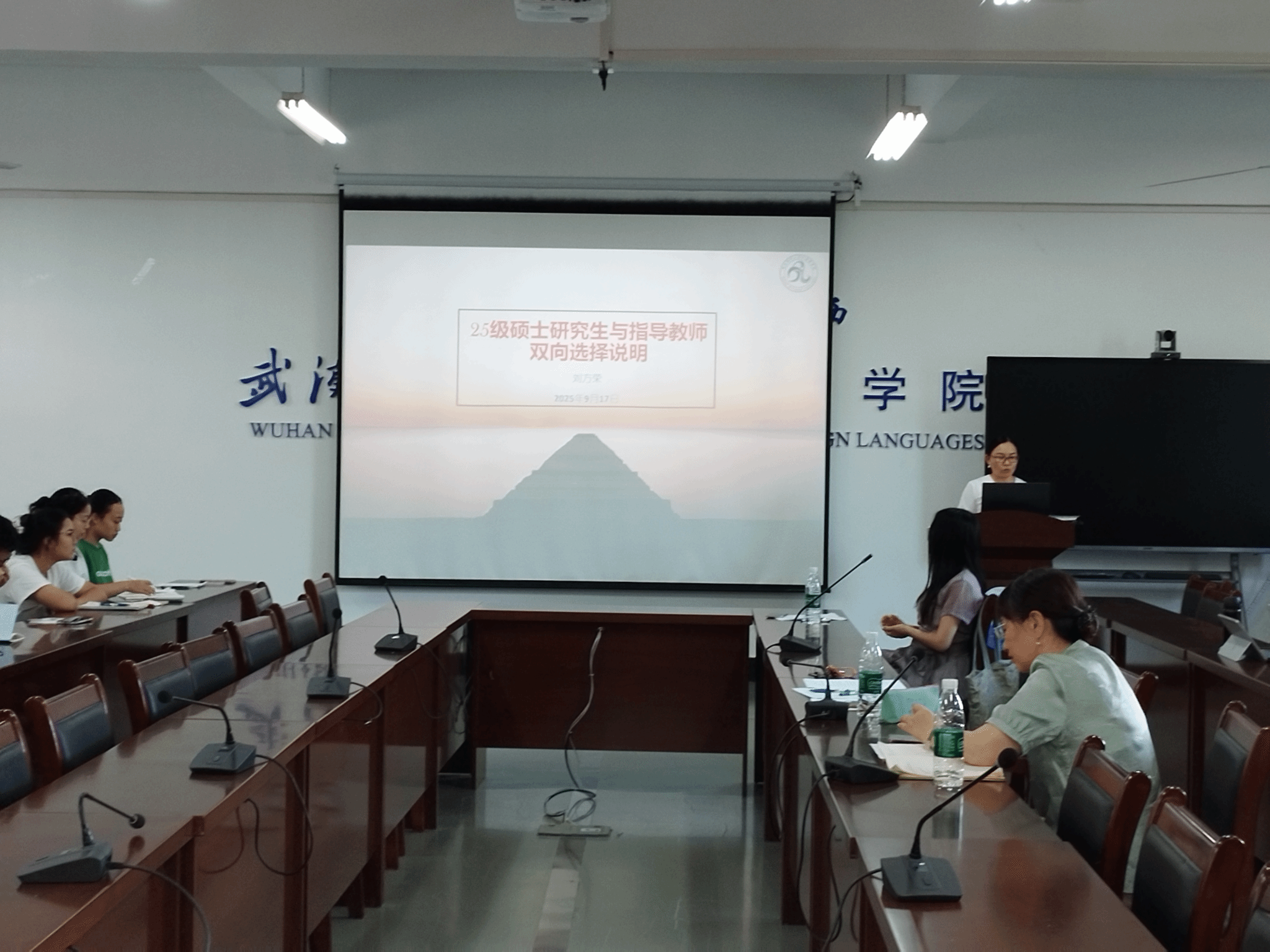 最后,副经理刘方荣对2025级MTI研究生与导师的双向选择作了说明,重点阐释了双选流程、导师年度招生指标分配办法以及导师在培养过程中的责任与权利,刘经理鼓励同学们要不断奋斗做一名优秀的翻译专业人才。至此,2025级MTI研究生开学典礼暨导师见面会圆满结束。