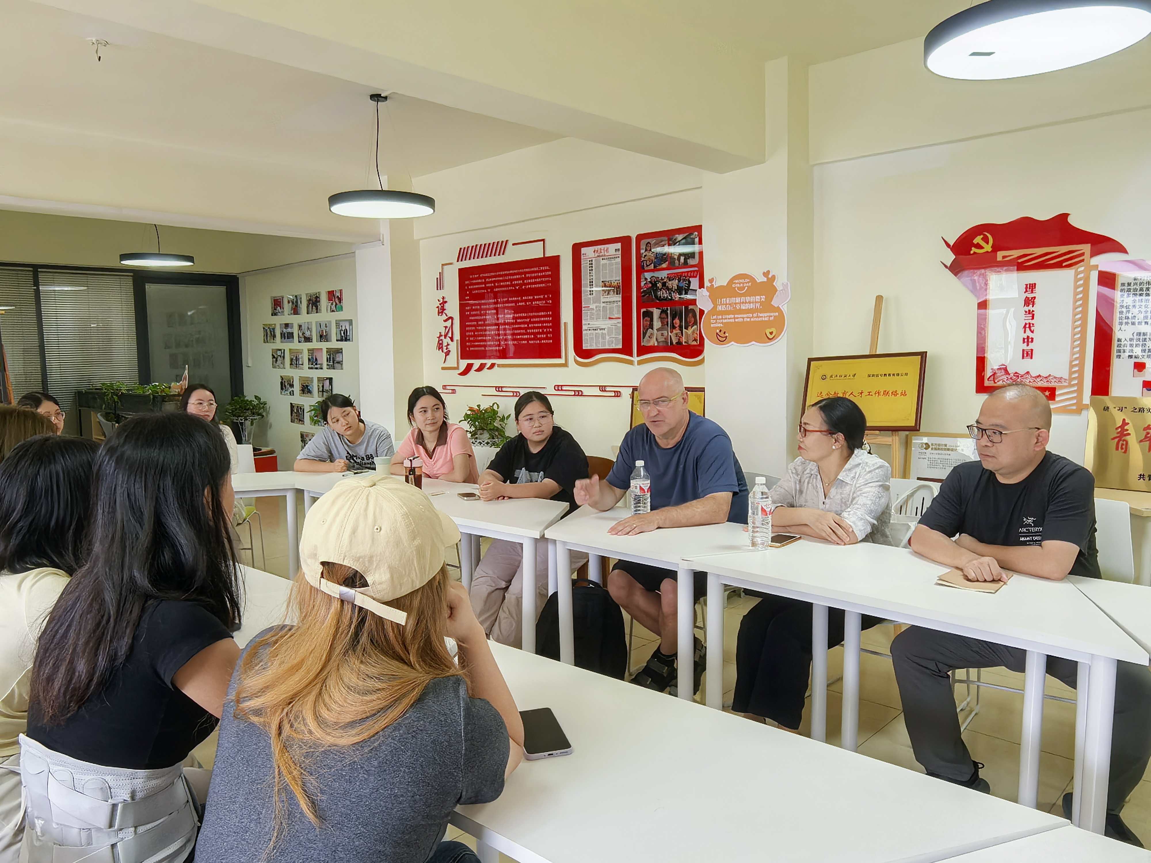 9月9日,世界著名科学家来鄂讲学计划专家,剑桥大学中文系教授、博士生导师Roeland Sterckx应邀到云顶国际 读“习”有声 一站式员工社区,与学院师生围绕中国传统文化、语言哲学及中西文化交流等主题展开座谈。学院本科生、研究生代表及青年教师共同参与了本次活动。